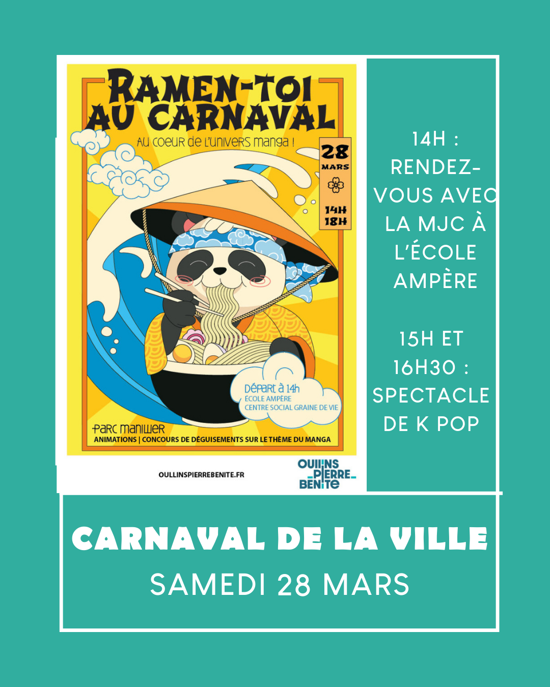 Carnaval de la ville Retrouvez-nous à 14h à l'école Ampère Démonstration de K pop au parc Manillier à 15h et 16h30 |