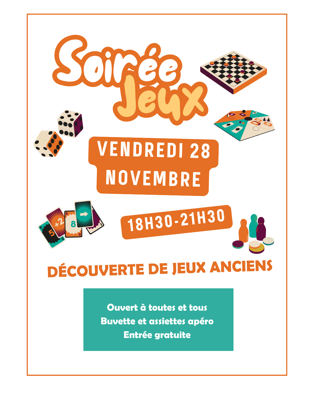 Soirée jeux Entrée gratuite - Parking sur place - Assiettes apéro
