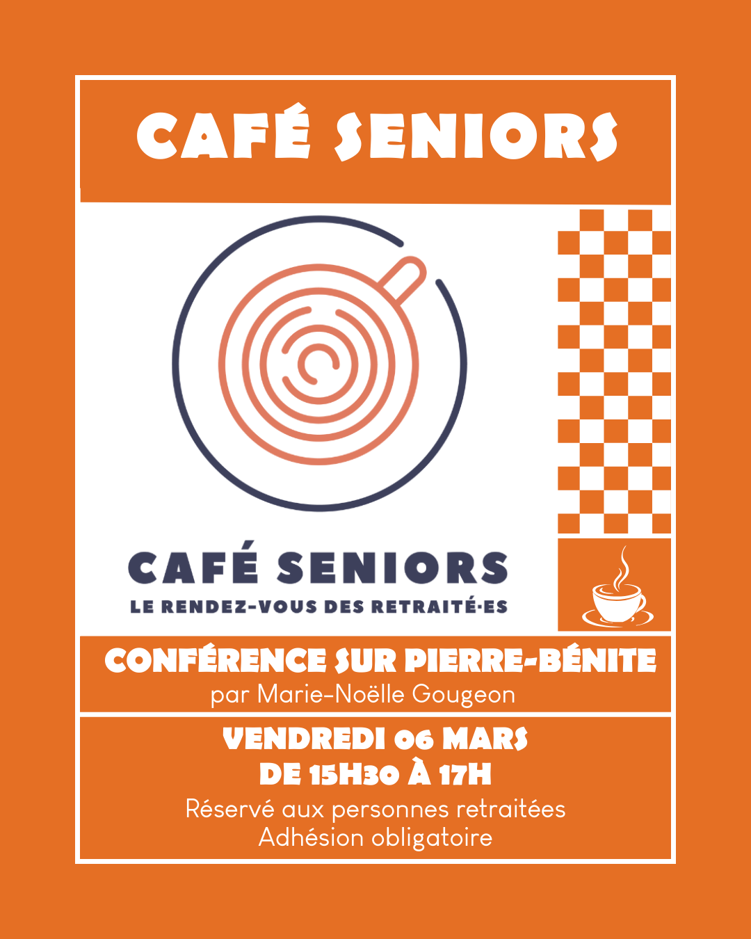 Café seniors : conférence sur Pierre-Bénite Par Marie-Noëlle Gougeon Réservé aux adhérent·es retraité·es.